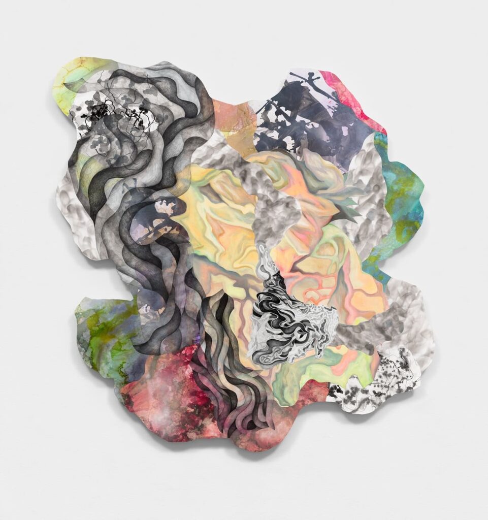 Wong holds an MFA from the San Francisco Art Institute, an environment known for encouraging conceptual rigor and material exploration. This foundation is evident in her fearless approach to media and her commitment to process-driven work. Rather than treating materials as passive tools, Wong allows them to actively shape meaning. Oil paint, graphite, alcohol ink, candle smoke, and fiber are layered, cut, burned, and assembled to form surfaces that feel both physical and psychological.